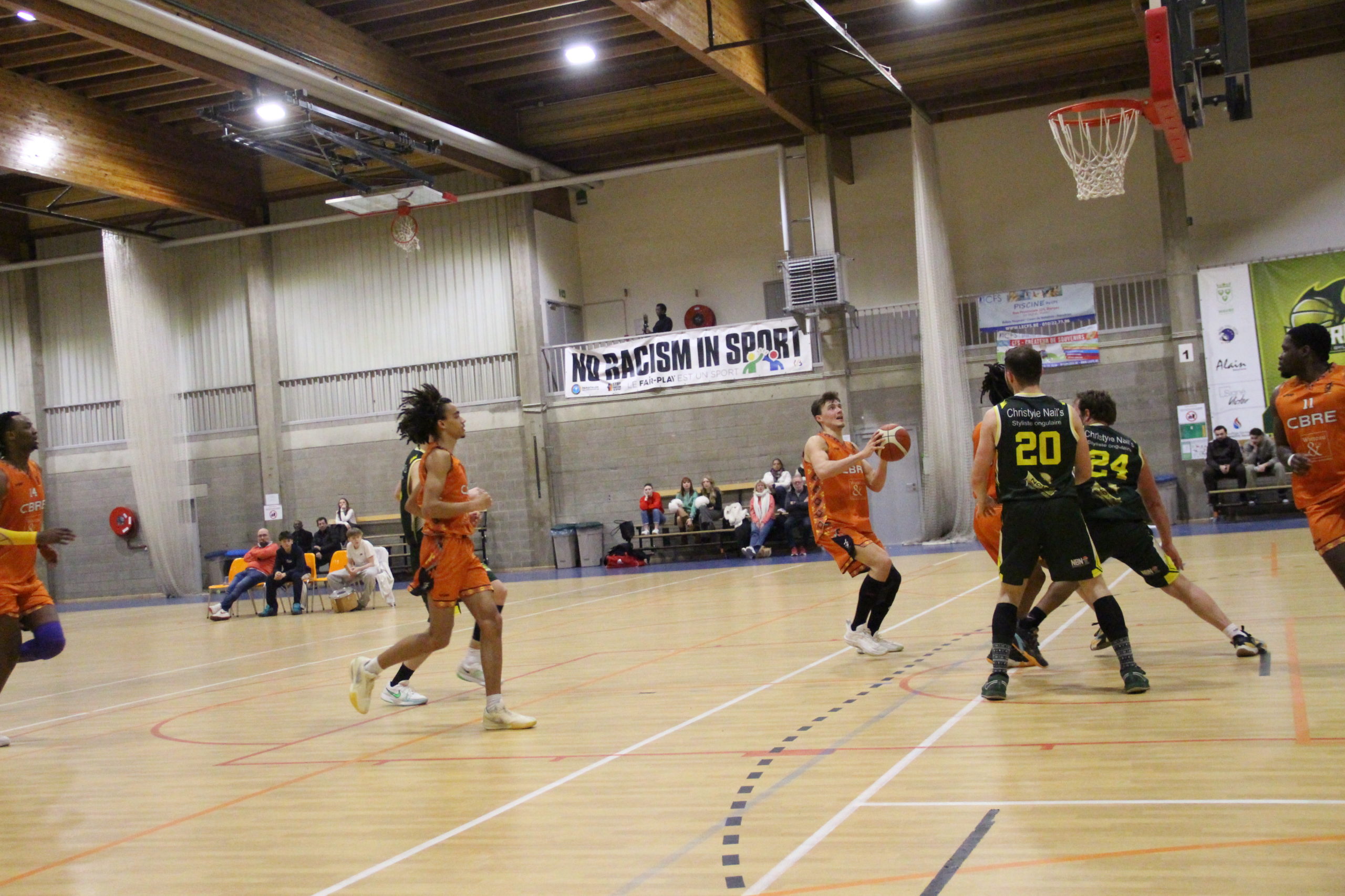 Les Oranges démarraient timidement avant de prendre un premier ascendant dans le 1er quart-temps (12-23). C’est Wavre qui trouvera ensuite ses repères offensifs pour réduire très légèrement l’écart avant le repos (32-41).