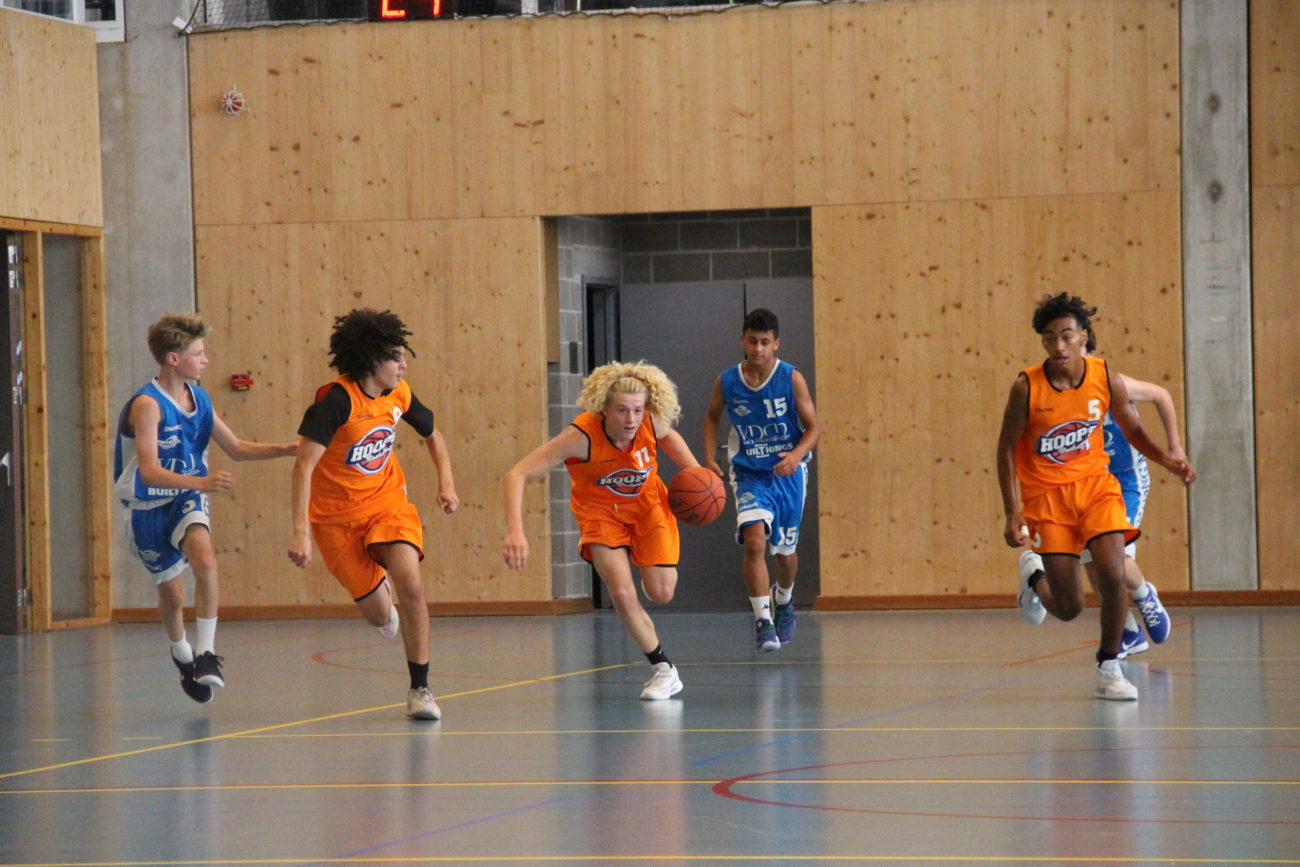 Après avoir écarté Overijse lors du week-end d’ouverture, nos U16 Régionaux A ont, ce dimanche, accueilli Falco Gent pour un deuxième galop de préparation. Notre effectif était certes incomplet, l’équipe manquait de jeu intérieur mais nos jeunes ont très bien compensé cela avec une bonne rigueur défensive et, partant de là, une juste gestion des transitions offensives. Beaucoup de paniers en situation finale de 1 contre 0 qui explique l’ampleur du score au repos (58-28).